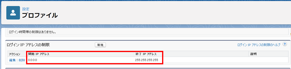 データ連携で利用するユーザのプロファイルのログインIPアドレスの制限を緩和する。