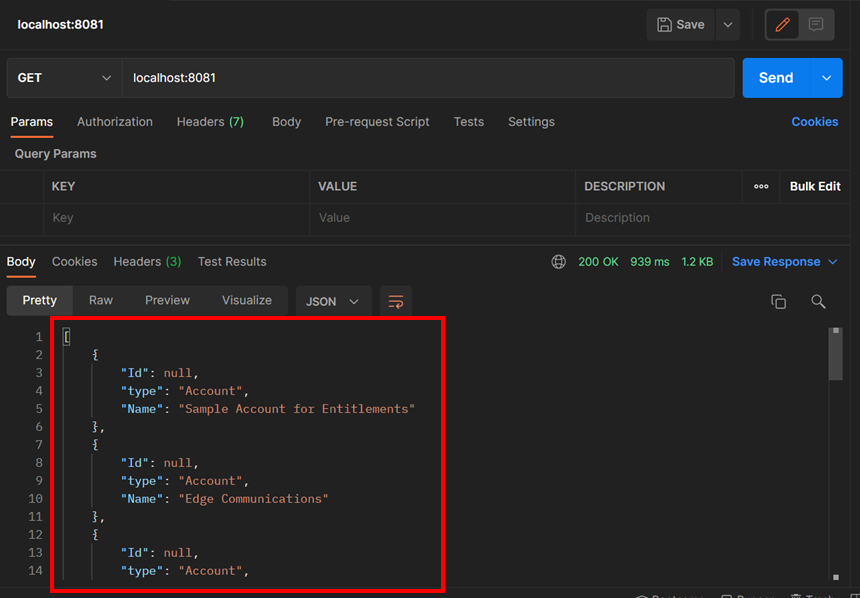 Salesforceの認証が成功し、Salesforceの情報が取得できたことが確認できた。