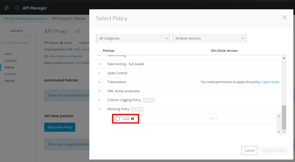 Muleモックカスタムポリシーの利用方法