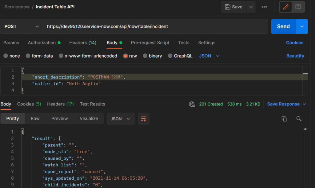 URI: POST https://{instance-id}.service-now.com/api/now/table/incident