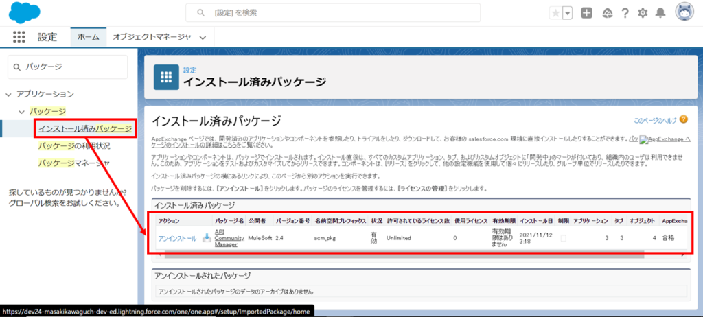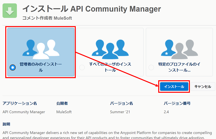 4.SFDC:[API Community Manager]パッケージをインストールする。