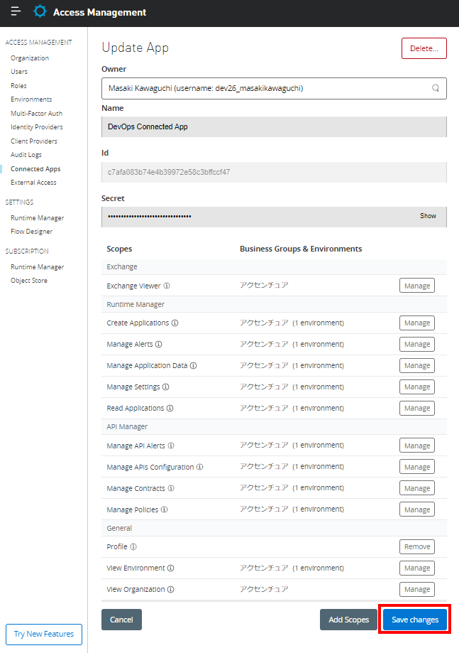 DevOpsを構築する機会があり、CIツールからMuleアプリケーションを構築するための接続アプリケーションの権限について調査した。権限設定について説明する。