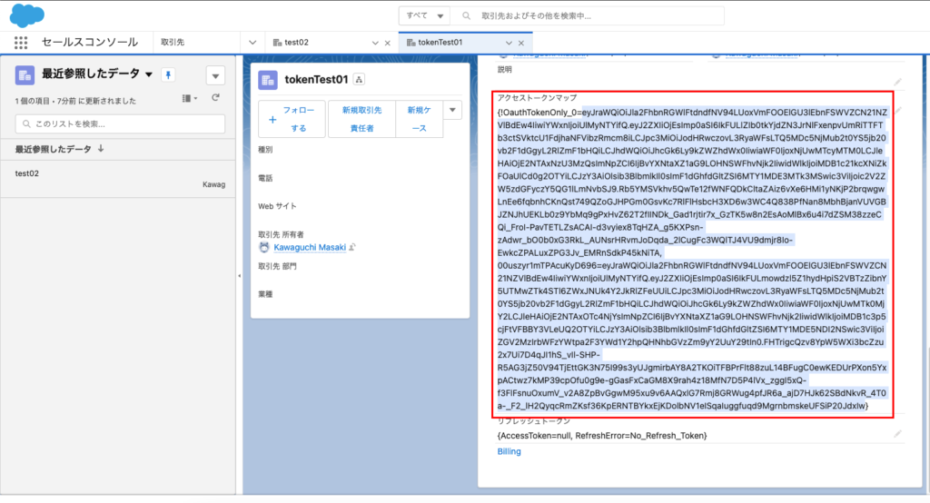 3.取引先詳細画面でアクセストークンを確認する