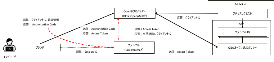 エンドユーザがOpenIDプロバイダで認証し、クライアントが取得したアクセストークンが、OpenAPIプロバイダーのトークン検証APIで正しく動作するか確認する。