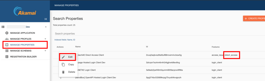 Direct Access権限の持つAPIクライアントの[Client Id]と[Client Secret]を取得する。